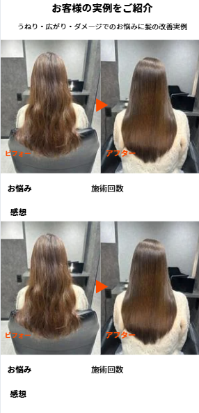初回で手触り・ツヤを体感 → 数週後に持続を伸ばす調整 → 3回目で**“乾かすだけで決まる日”が増える**、という設計です.