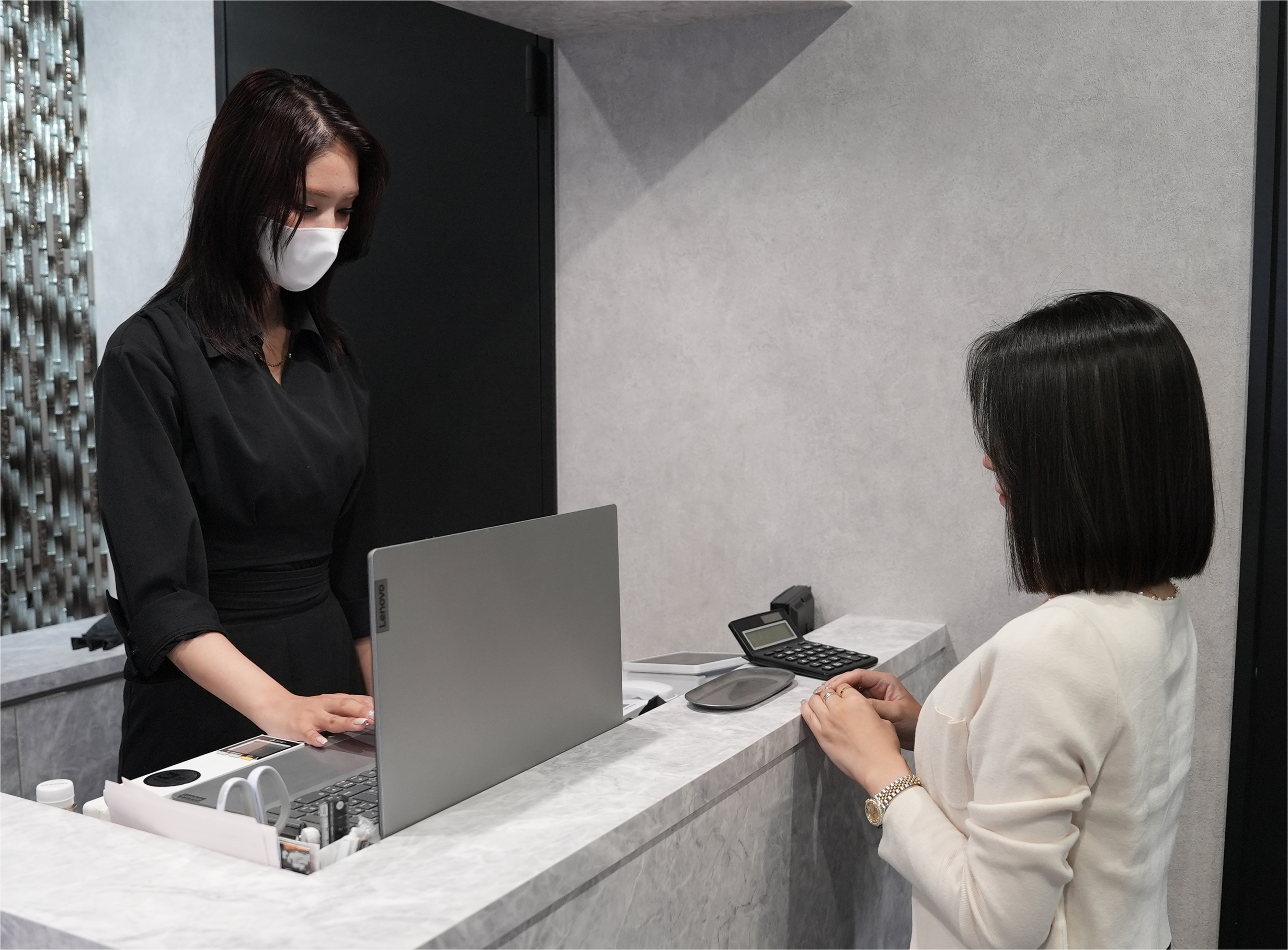 受付でお会計。3〜4か月で計3回(初月2回→以降4〜6週)がおすすめです。